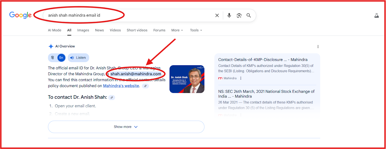 When an email isn’t available on LinkedIn, you can often find it with a quick Google search.